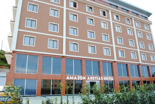 Amazon Aretias Hotel yeşille mavinin buluşma noktası olan, fındığın başkenti, kirazın anavatanı Giresun ilindedir. Adını Doğu Karadeniz’ in tek adası olan Giresun adası ve orada yaşamış olan Amazon kadınlarından almıştır. Otelimiz 50 standart, 2 bedensel engelli, 4 sigara içilmeyen ve 4 suit oda olmak üzere toplam 60 oda 120 yatak kapasitesine sahiptir. Misafirlerimize 4 yıldız kalitesini en üst seviyede yaşatmak için hazırlanan 32 si deniz ve 28 i orman(dağ) manzaralı odalarımızda Klima, Telefon, LCD Tv ve uydu yayınları, yüksek hızda internet, elektronik kasa, mini bar, saç kurutma makinesi, merkezi ısıtma sistemi ve 24 saat oda servisi standart olarak sunulmuştur. Otelimiz her türlü aktiviteye ev sahipliği yapabilecek seviyede 2 adet 400 kişilik çok amaçlı salon, 1 adet 250 kişilik Roof&Bar, 1 adet 200 kişilik garden restaurant, 70 araçlık açık otopark ve 20 araçlık kapalı otoparka sahiptir. Ayrıca lobi, pastane, fındık salon ve oyun salonu ile de hizmet vermektedir.