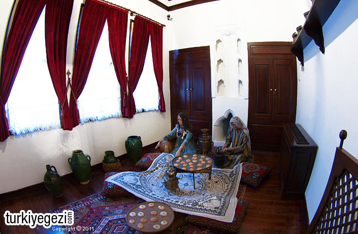 1865 yılında defterdar Hasan Talat Efendi tarafından, Antik dönem sur duvarları üzerine, bodrum üzeri iki katlı, ahşap ve kerpiç olarak inşa ettirilen, orta sofalı, dört eyvanlı plan tipine sahip, iç avlulu ve dışa kapalı geleneksel Osmanlı konut mimarisinin seçkin örneklerinden olan konak halen etnografya müzesi olarak kullanılmaktadır. 1979 yılında kamulaştırılmış.