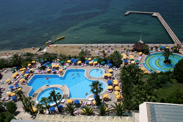 Toplam 22 dönüm alana sahip, 8 katlı bina temiz deniz ve 150 metre uzunluğunda